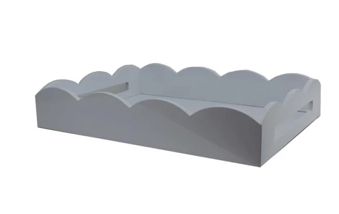 Our stunning 17 x 13″ Lacquered Chiffon Gray Tray features twenty coats of high gloss lacquer, hand-polished between each coat.
