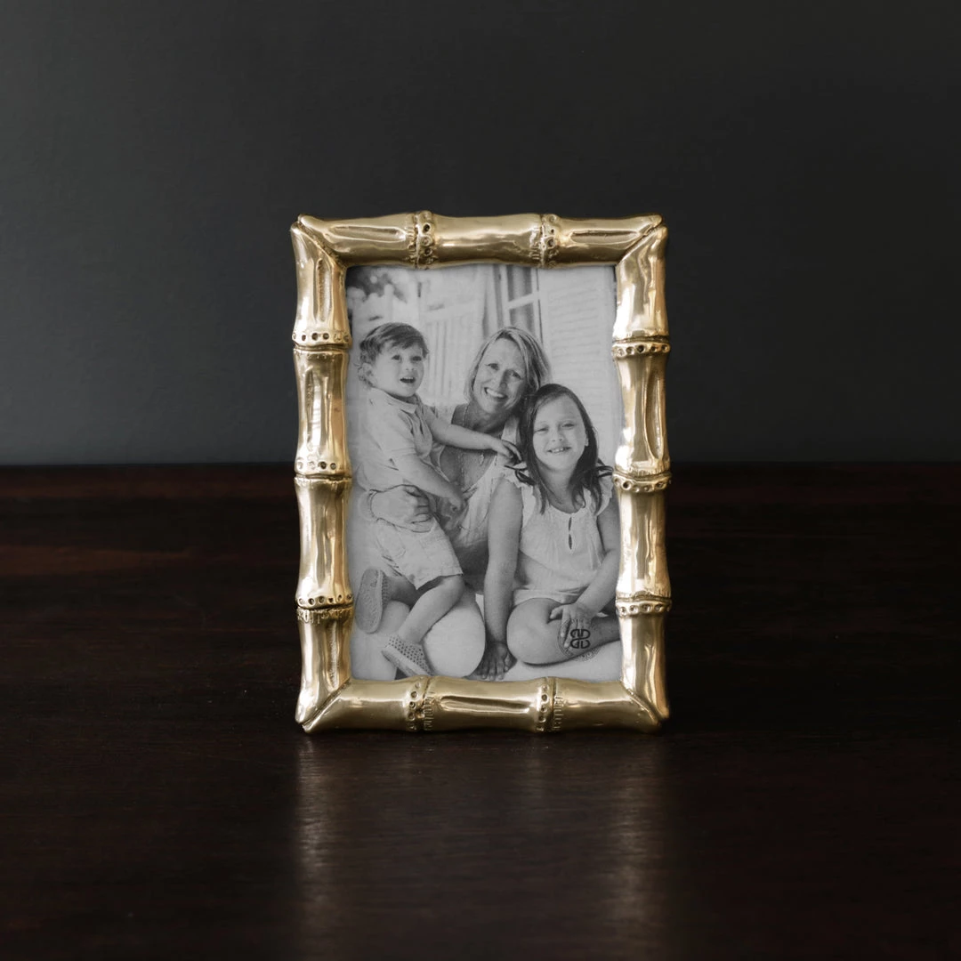 “We cannot live without bamboo for a single day,” wrote the Chinese poet Su Dungpo more than a thousand years ago. One look at this gleaming bamboo-inspired FRAME Sierra Modern Bamboo 4 x 6 Frame (Gold) featuring a modern and exciting proprietary metallic gold-tone finish, and you’ll agree! Designed to display a 4×6 photo (vertically or horizontally), the can’t-live-without-it frame looks awesome on a desk, mantle, or table. The sophisticated decorative piece adds a modern new edge to Beatriz Ball’s award-winning designs. The SIERRA MODERN line of iconic Beatriz Ball designs in modern metallic finishes takes them to a brand new dimension of elegance and richness. A great gift! Beatriz Ball’s intensely handmade products use eco-friendly and sustainable materials and are crafted by artisans who trace a heritage of metalworking for generations. Made of a top quality, easy-care, aluminum alloy. Tarnish-free!