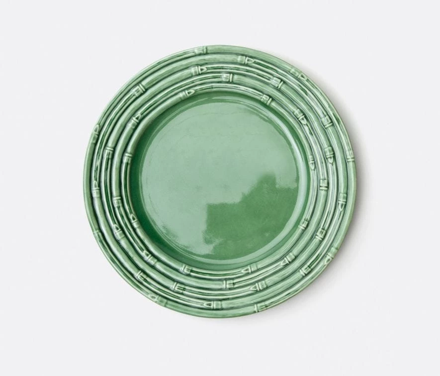 Serving a meal with our bamboo-inspired Gia is like bringing a bit of vacation to your tabletop. The wide-rimmed plates and textural cups give this earthenware collection an elegant island vibe. Add a pop of color with the just-bright-enough green.