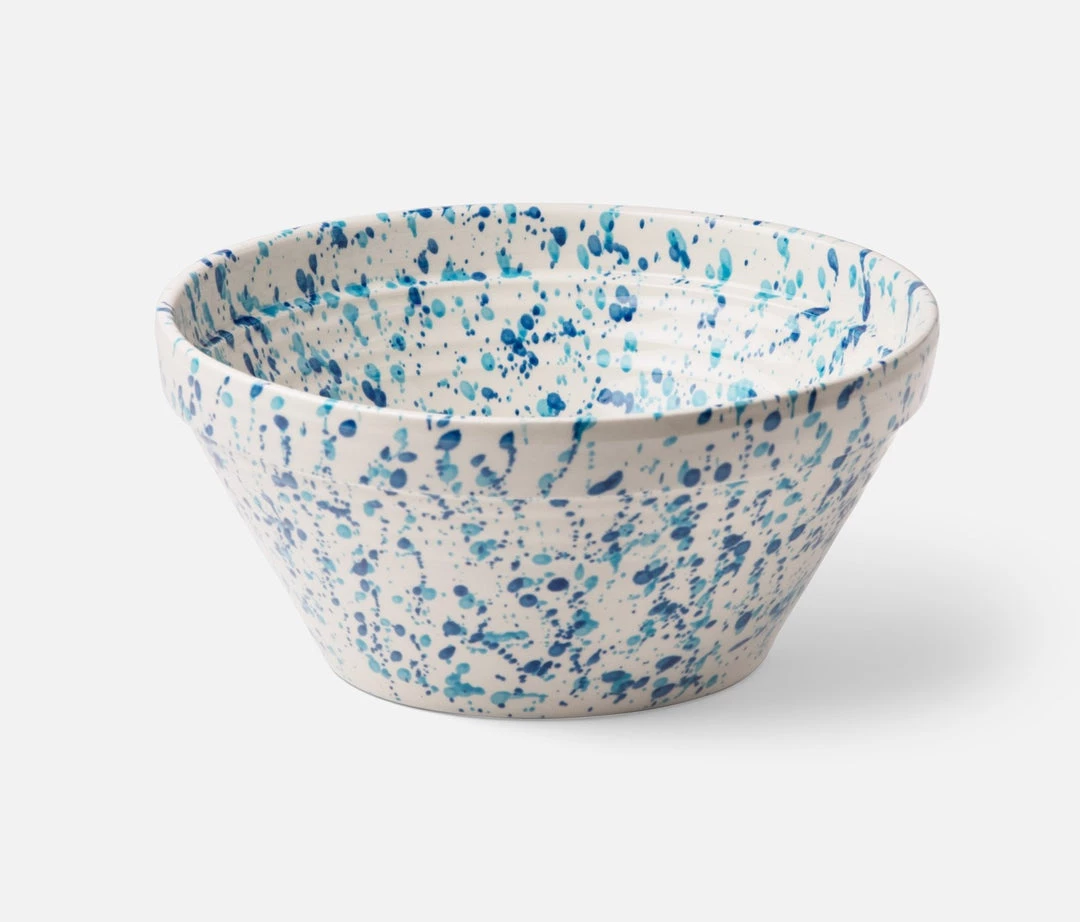 With a unique take on dining, Mark Sikes combines iconic American and European elements into a feel-good collection. All-purpose ridged bowl with vintage blue splatter.Â