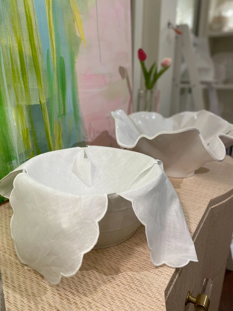 Boutross Imports Monogrammed – Linen Scallop Bunwarmer Linens