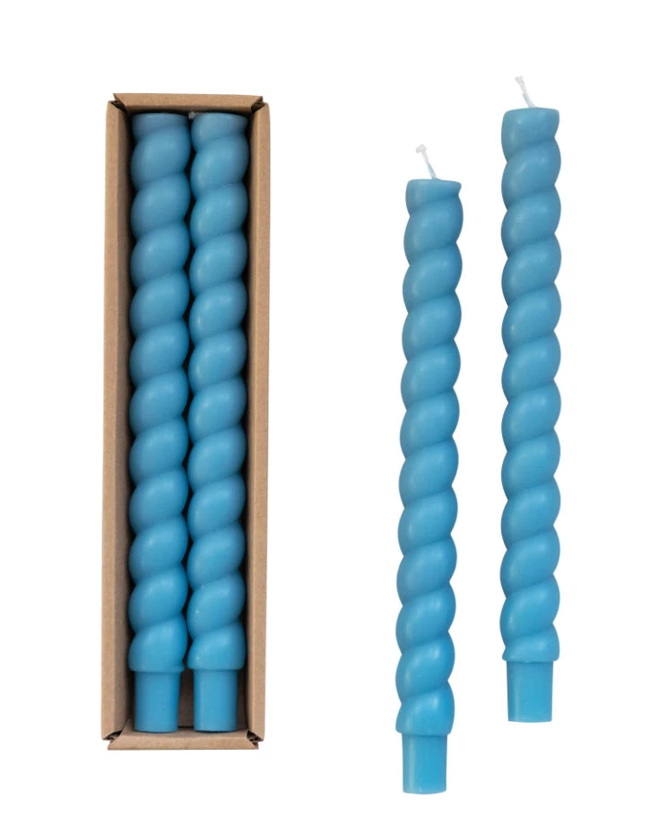 Creative Co-Op Décor Unscented Twisted Taper Candles- Blue