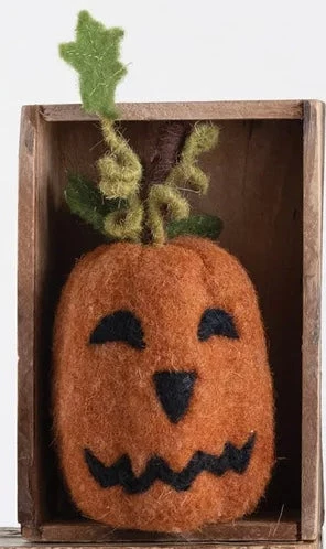 Add a touch of softness to your spooky display with this jolly woolen Jack-O-Lantern; Each plush accent is carefully constructed from wool felt to create the perfect textile figurine to cherish for years to come
