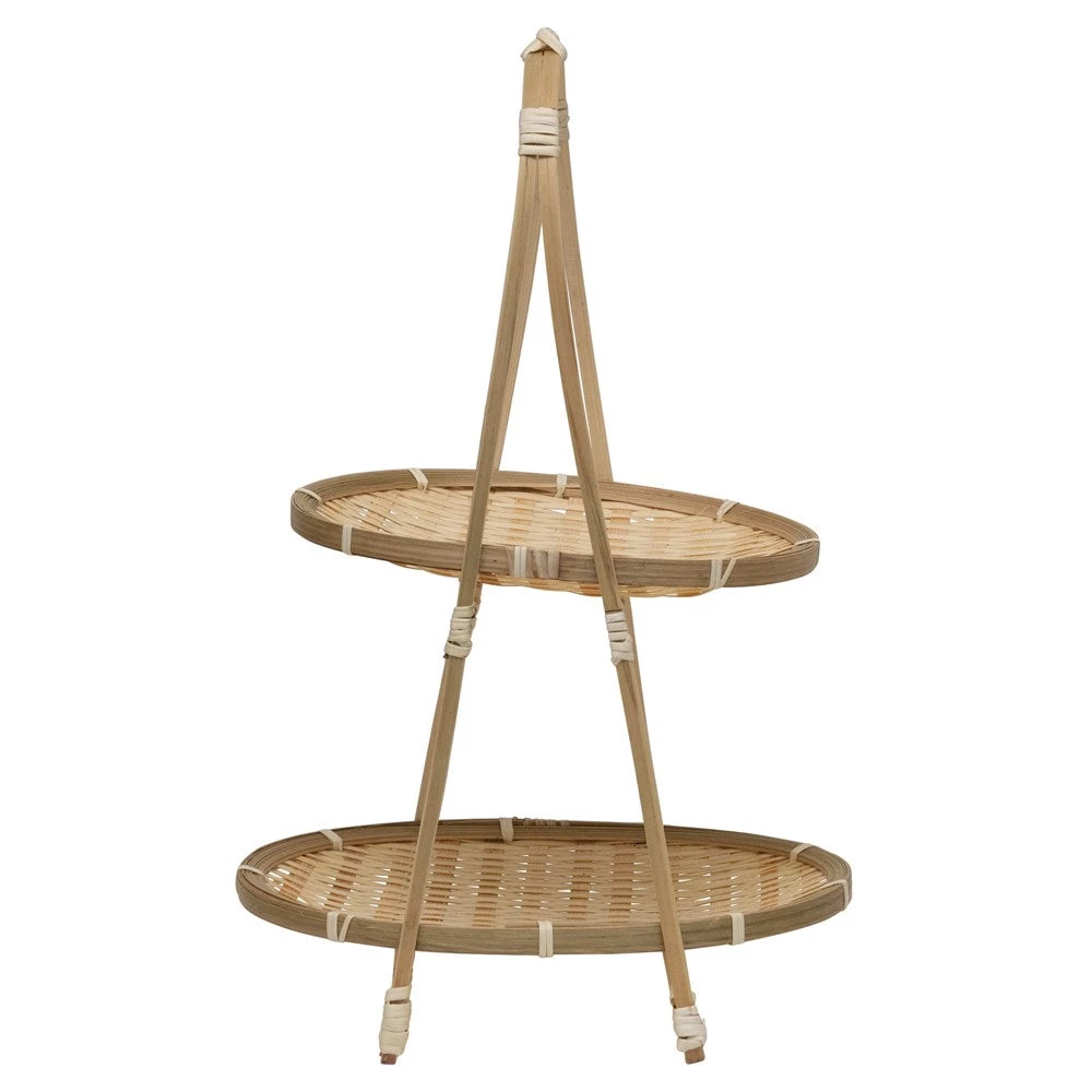 Creative Co-Op Tabletop Hand-Woven Bamboo Tiered Tray