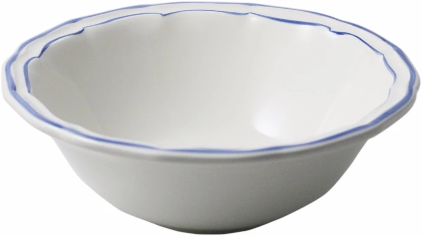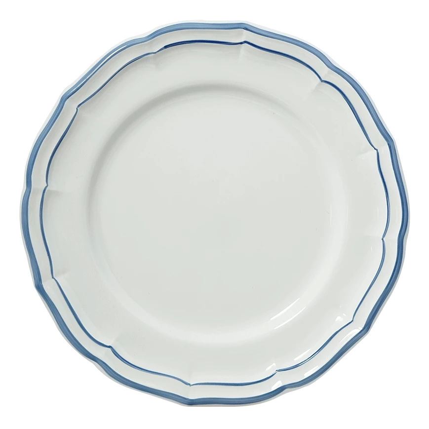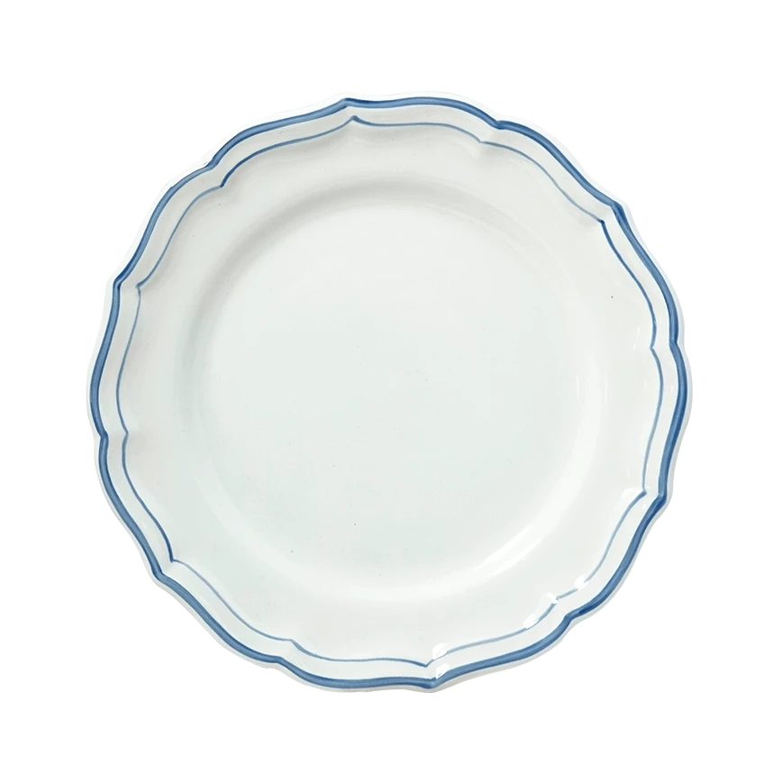 The Filet collection evokes an everyday elegance with delicate brush strokes hand-drawn on scalloped trim. Timeless tableware, sleek and elegant, enhanced by hand-painted banding and the classic scalloped edge.