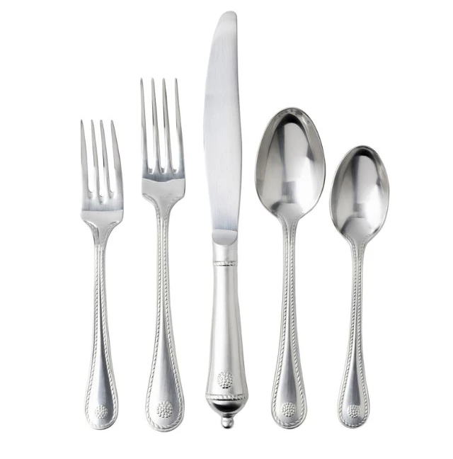 Meticulously designed and crafted in the spirit of old world French tradition, our Berry & Thread stainless steel flatware is optimum weight in-hand, exceptional for its decorative motif on both front and back and hand rubbed with care to a warm luster finish. This setting is the essence of rustic and refined style.