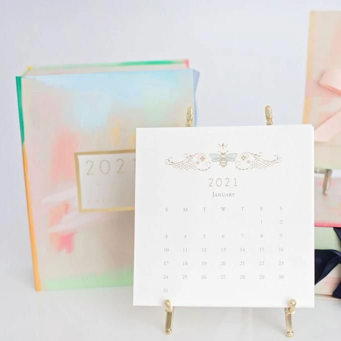 Each twelve 6-inch square—one for every month—features an original Karen Adams design that is printed and hand-finished in our studio. A beautiful gold easel is enclosed to showcase the month’s artwork on your desk, shelf, or counter.