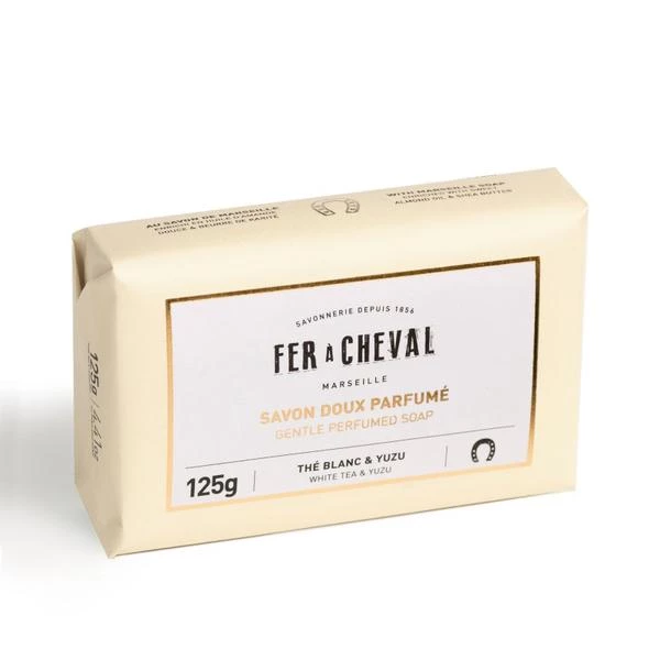 This mild soap scented White Tea & Yuzu combines a washing plant base with Marseille soap, sweet almond oil and shea butter that provide softness and help preserve the balance of the skin without drying.