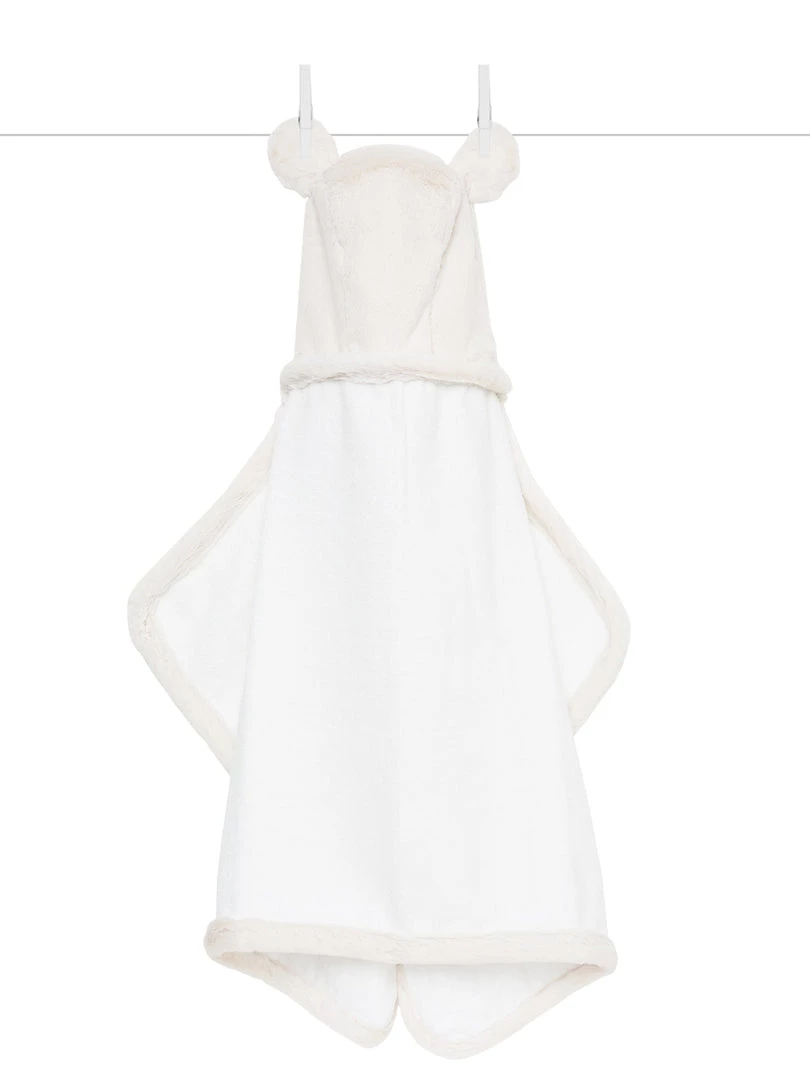 Wrap your child in this super absorbent, 100% cotton terry towel. The trim and hood feature our soft Luxeâ„¢ fabric, and adorable ears to make your little one’s bathtime and lounge time more fun!23″ x 41″