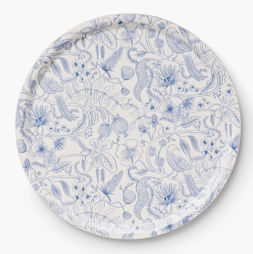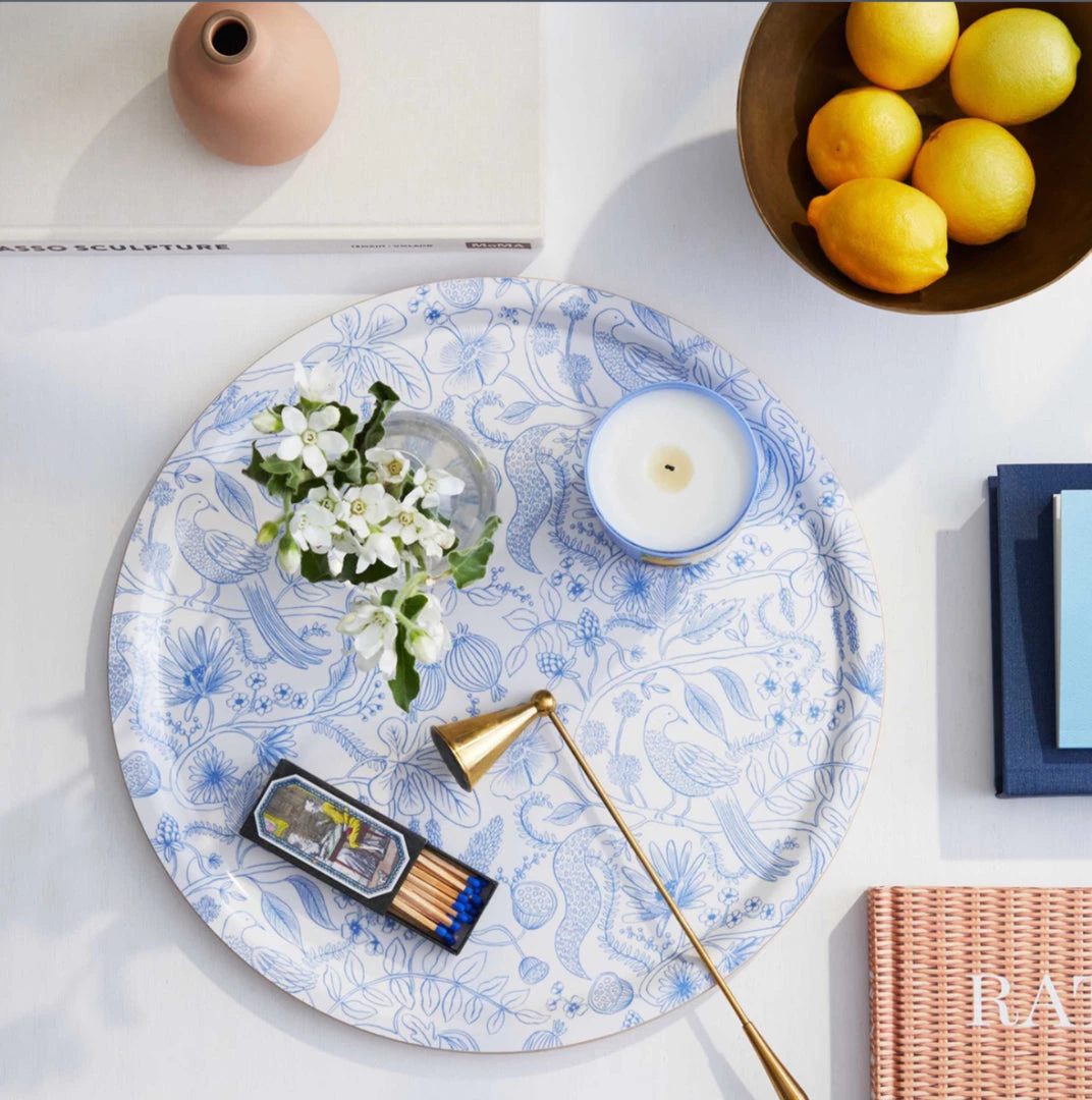 Our bent ply trays are as versatile as they are beautiful, handmade in Sweden from lightweight, FSC-certified birch. The laminated finish makes them perfect for entertaining inside and out, or adding a pop of color to your decor. This round tray features our intricate and classic Aviary design, and is perfect for coffee table decor or serving up a tray of drinks. DETAILS