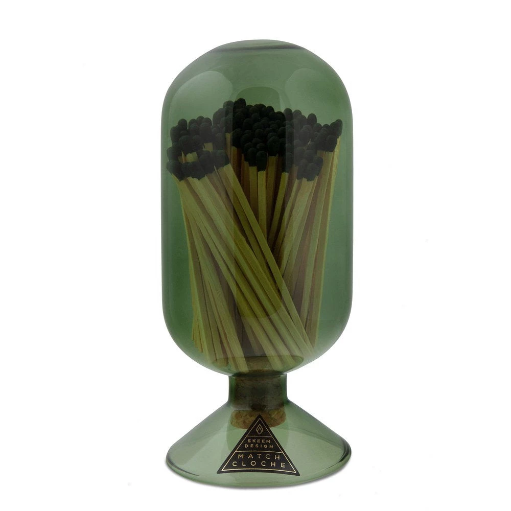 Alluding to olive groves, amber sun, and sweet, mulberry wine, our newest Match Cloches are rich with deep shades of jewel-toned glass. Our Match Cloches are inspired by vintage glass domes used to protect emerging seedlings, made with handblown glass and fitted with a cork to stylishly hold an assortment of matchsticks. A striker strip on the glass adds functionality, and the delicate vessels can be reused to display treasures and curiosities.• 120 matchsticks