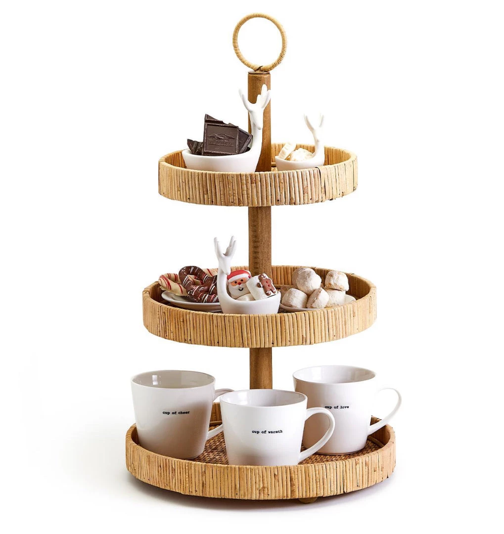 Dream Weavers 3-Tier Hand-Crafted Rattan Adjustable Centerpiece (adjust from 3 to 2 tiers, dry wipe only, packed KD assembly required, minor imperfections and variations are natural characteristic of material and hand-crafted origin) – Rattan/Iron/Fir Wood