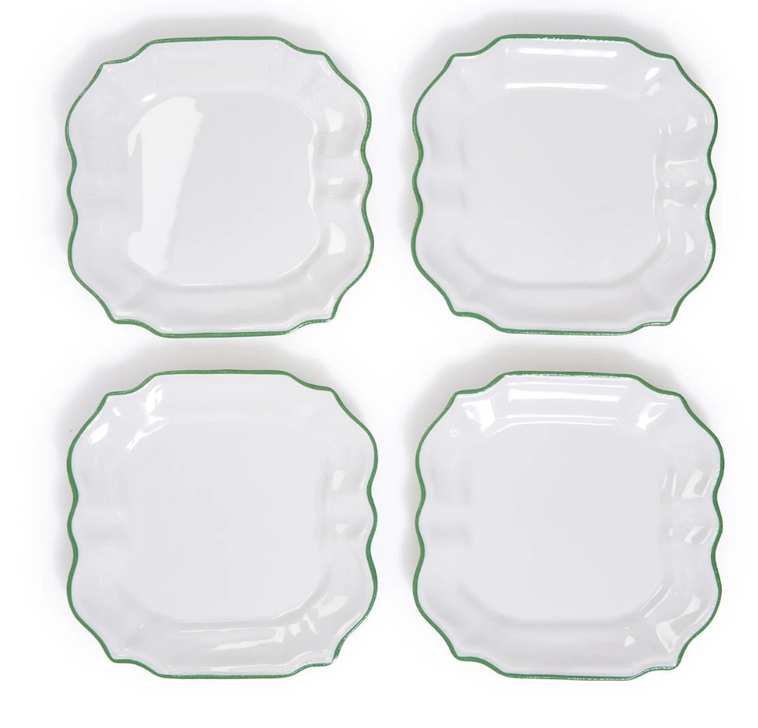 There are no worries when serving your guests when it comes to our shatter resistant melamine collection. An elegant yet durable choice for your dining and serving needs. Accent plate with a garden green scalloped edge.