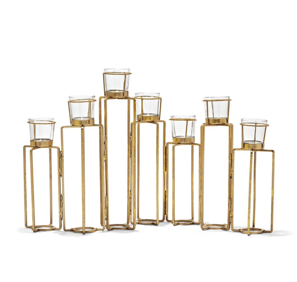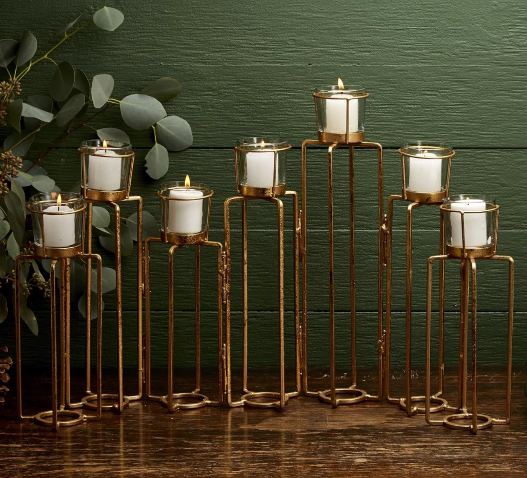 A wave of glass and iron, this serpentine-inspired candelabra adds beauty to any table setting.