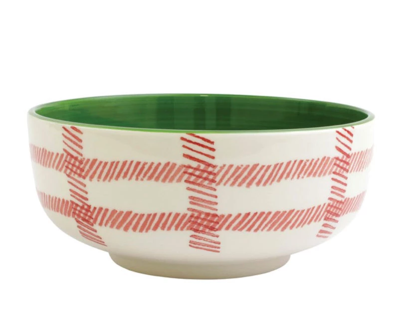 Vietri Tabletop Mistletoe Plaid Large Footed Serving Bowl