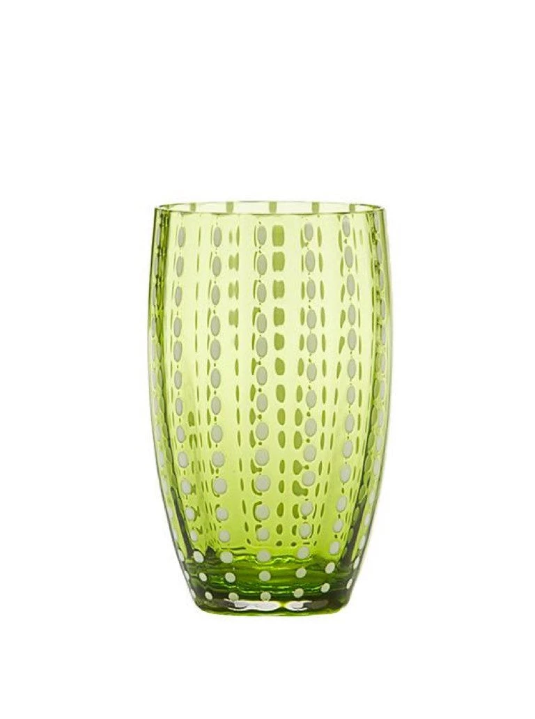 Enhance the color scheme of your table with  these Perle Tumblers . Designed to resemble a string of glass pearls cascading down the outside of the piece, these glasses are mouth-blown and handcrafted using age-old techniques.Â