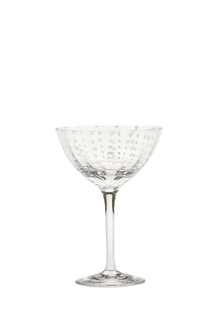 The Perle Cocktail Glass has a charming effect. Designed to resemble a string of glass pearls cascading down the outside of the piece, these glasses are mouth-blown and handcrafted using age-old techniques.
