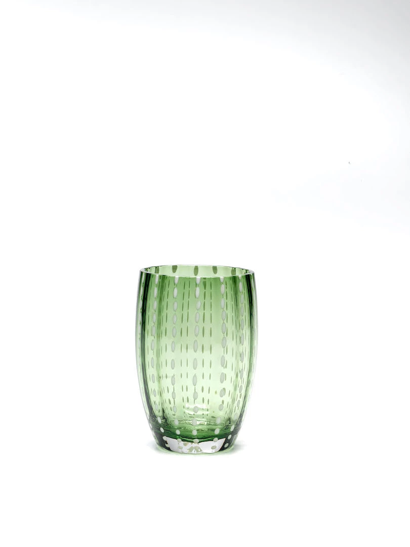 Enhance the color scheme of your table with an assortment of these Perle Tumblers . Designed to resemble a string of glass pearls cascading down the outside of the piece, these glasses are mouth-blown and handcrafted using age-old techniques.Â